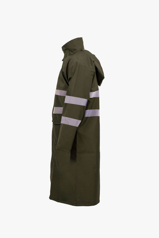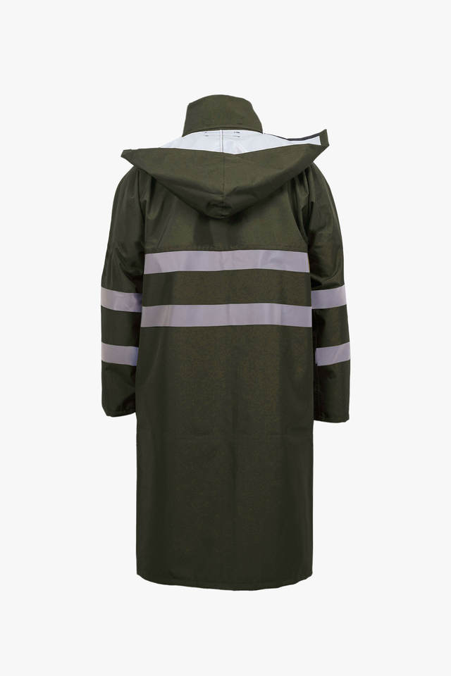 Chaqueta de lluvia recubierta de PU impermeable ligera de alta visibilidad con tiras reflectantes para acampar y proteger la ropa de trabajo al aire libre