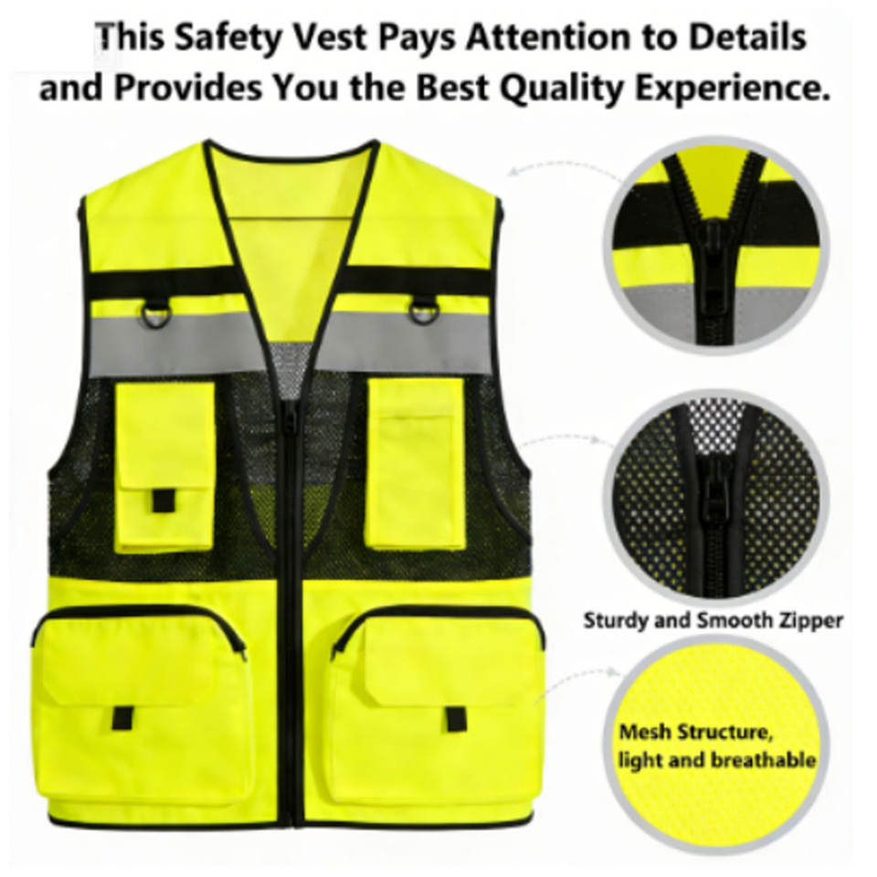 Chaleco de Seguridad Reflectante de Alta Visibilidad con Múltiples Bolsillos para Construcción, Tráfico y Trabajo Industrial