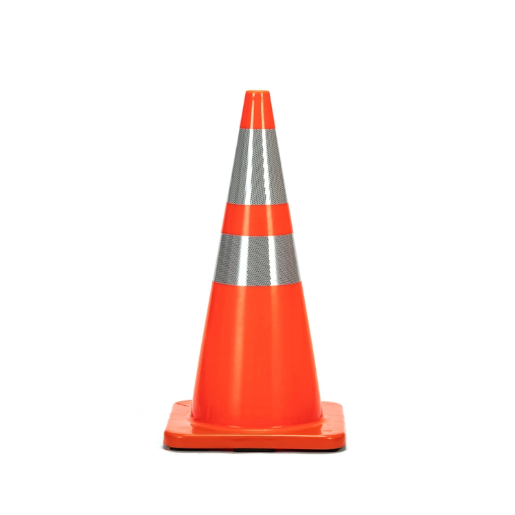 Cono DE TRÁFICO DE PVC naranja de alta visibilidad con cinta reflectante Base flexible Producto de tráfico de advertencia de carretera efectivo