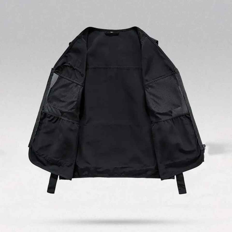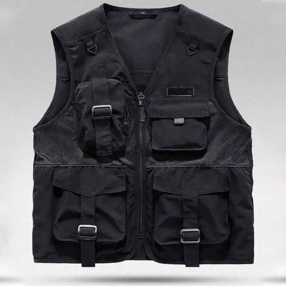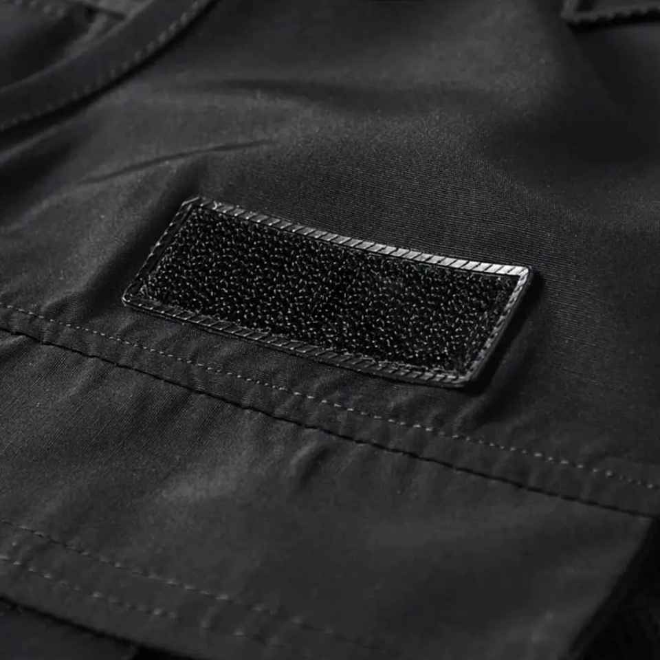 2025 Chaleco de trabajo de seguridad de alta visibilidad bolsillo reflectante negro ropa exterior informal con botón decoración logotipo personalizable