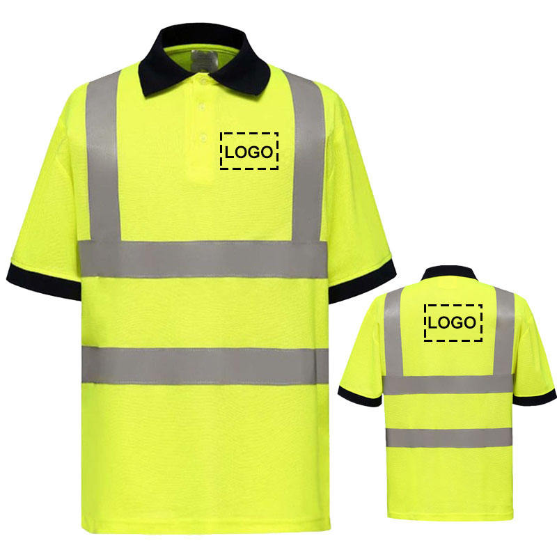 Camiseta Polo de Alta Visibilidad Reflectante para Hombre, Manga Corta, Cuello en Contraste, Logotipo Personalizado, Ropa de Trabajo de Seguridad