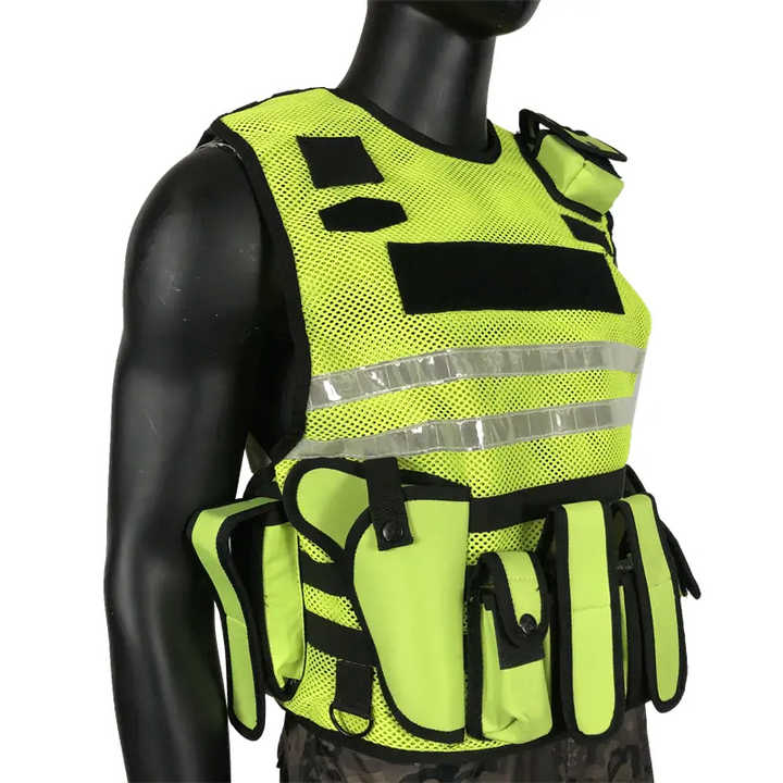 Chaleco de seguridad reflectante de alta visibilidad con bolsillos y cremallera, chaleco de trabajo industrial para trabajadores de la construcción y seguridad vial