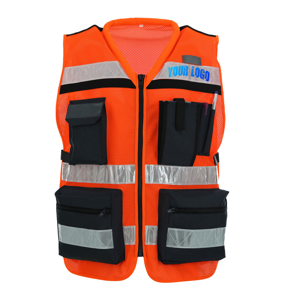 Chaleco de seguridad reflectante de alta visibilidad con múltiples bolsillos, chaleco de trabajo de alta visibilidad para construcción, chaleco reflectante ANSI para trabajo en carretera