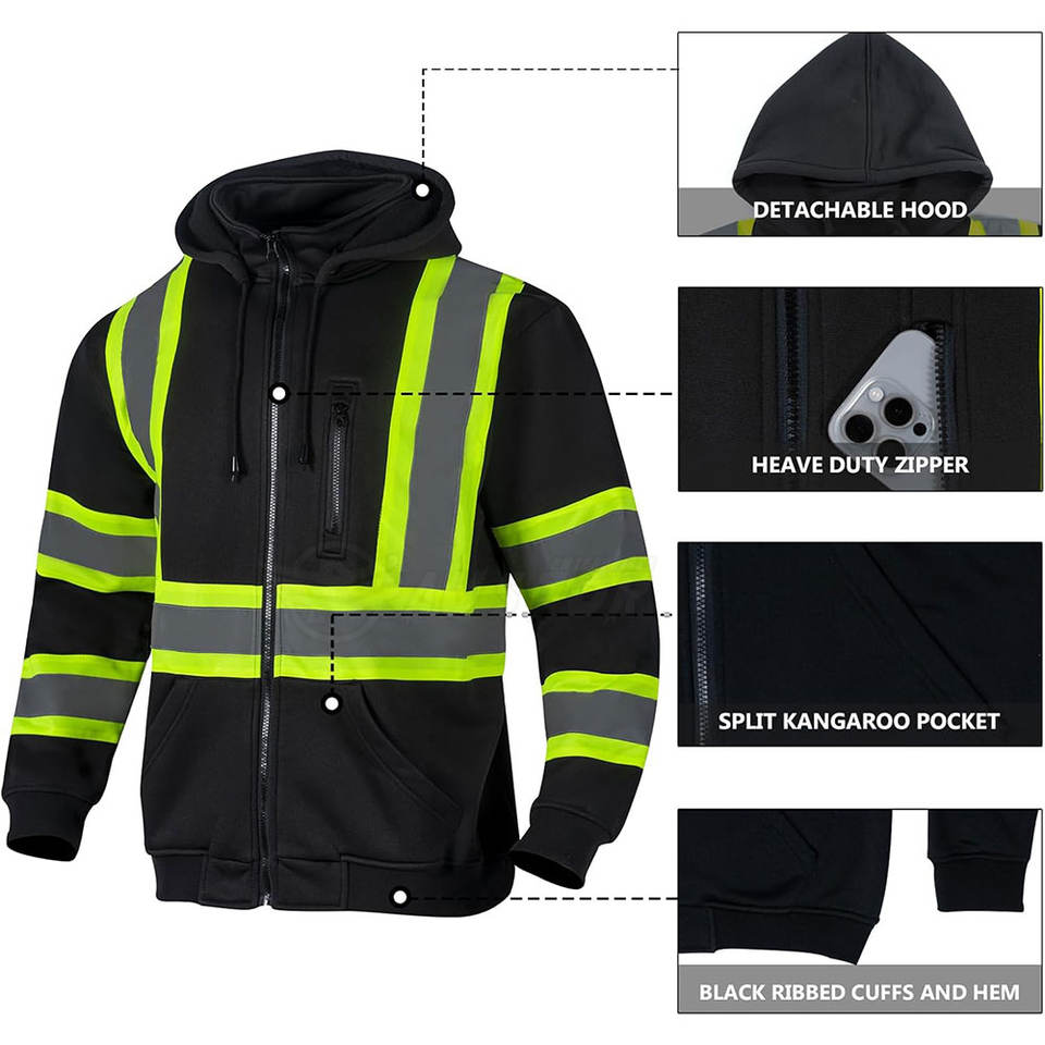 Sudadera con capucha de seguridad de alta visibilidad Ropa DE TRABAJO reflectante con cierre de cremallera para trabajadores de la construcción