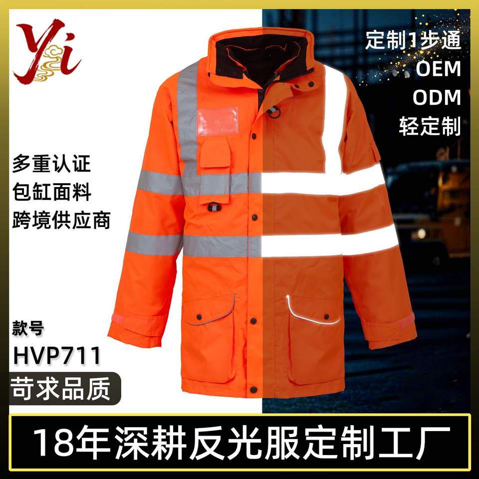Chaqueta de Seguridad de Alta Visibilidad HVP711, Reflectante, Impermeable, Ropa de Trabajo Cálida para Uso Nocturno en Exteriores