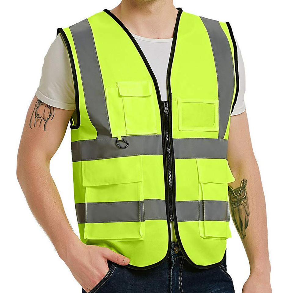 Chaleco de Alta Visibilidad con Bolsillos con Cremallera, Ropa de Trabajo para Limpieza, Ropa de Seguridad para la Construcción, Secado Rápido, Reflectante, para Hombre