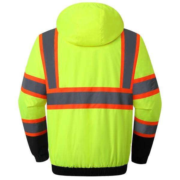 Chaqueta de Seguridad de Invierno con Capucha de Alta Visibilidad, Impermeable y Reflectante, con Logotipo Frontal y Múltiples Bolsillos