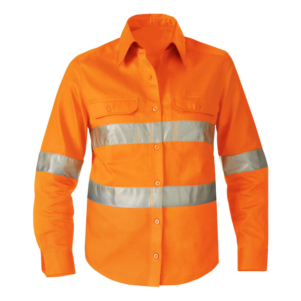 Camisas de trabajo personalizadas de alta visibilidad para mujer, manga larga, algodón transpirable, taladro, uniforme Industrial, rayas reflectantes de seguridad de alta visibilidad