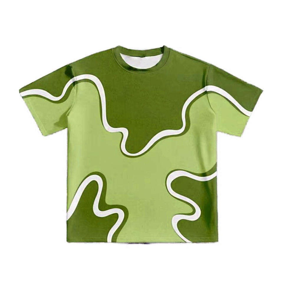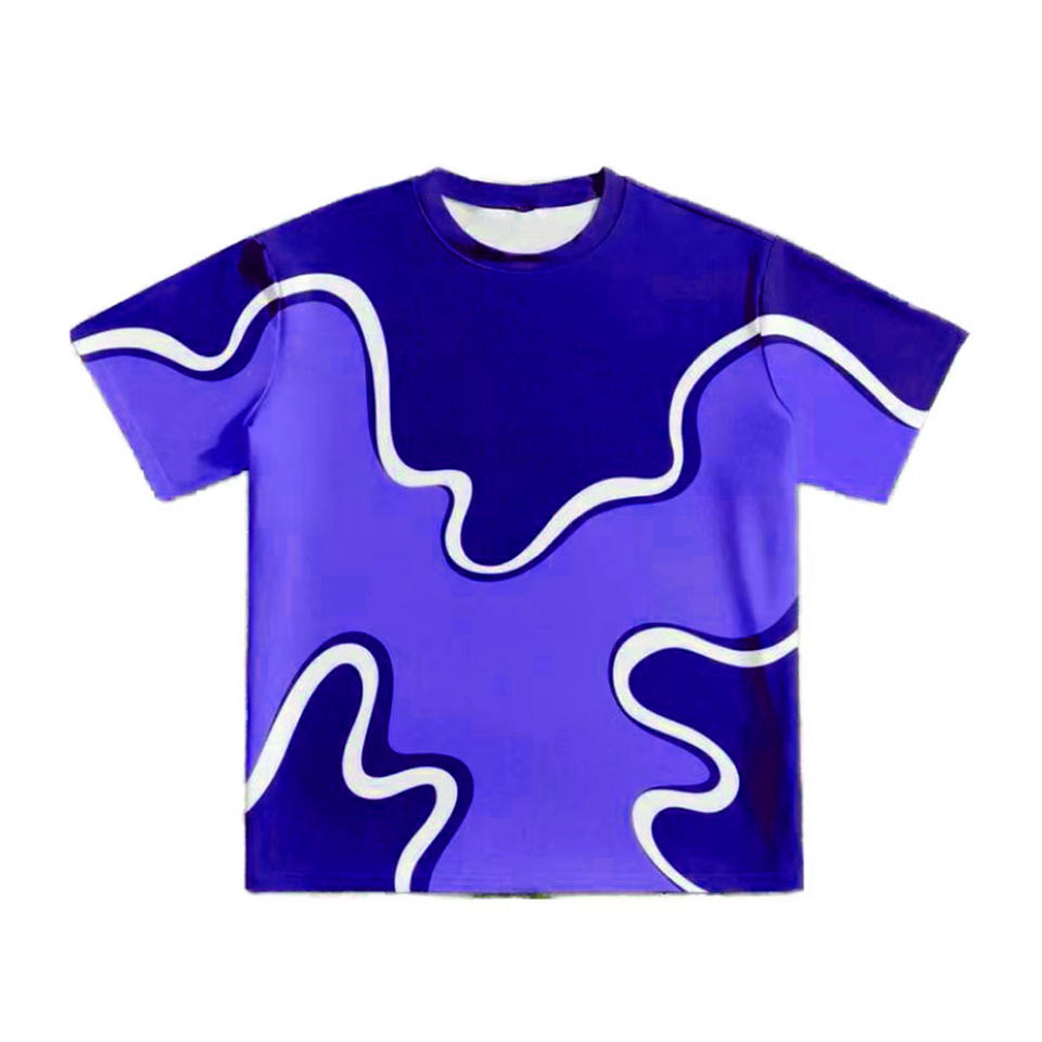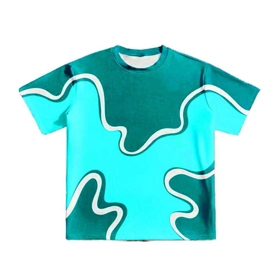 Camiseta de Hombre con Diseño Abstracto de Líneas Azules, Gran Volumen de Ventas, 100% Algodón Peinado, Estilo Urbano, Ajuste Holgado, Manga Corta, Gráfico