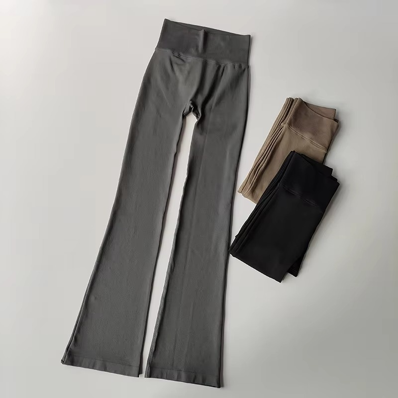 Pantalones de yoga de cintura alta, compresivos, sólidos, microacampanados, para exteriores, sin costuras, elásticos, transpirables, con elasticidad en cuatro direcciones, hasta el tobillo