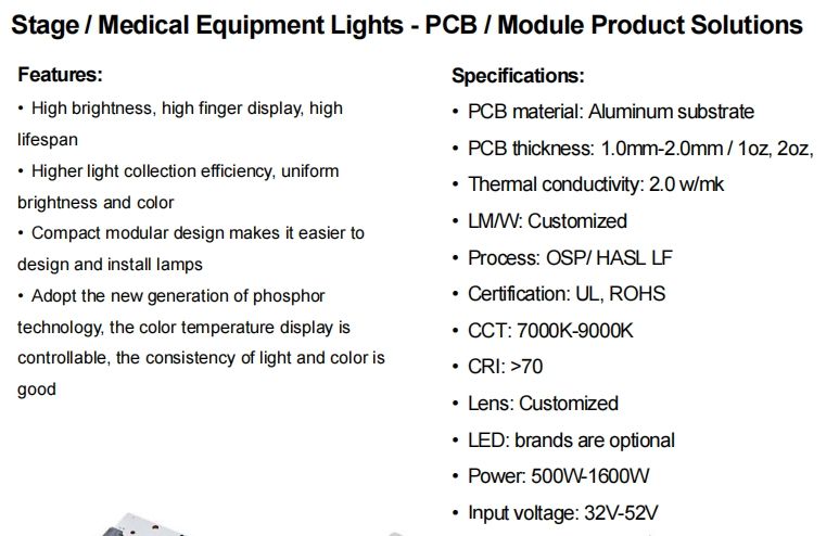 Soluciones de iluminación de servicio:Iluminación del equipamiento médico de la etapa