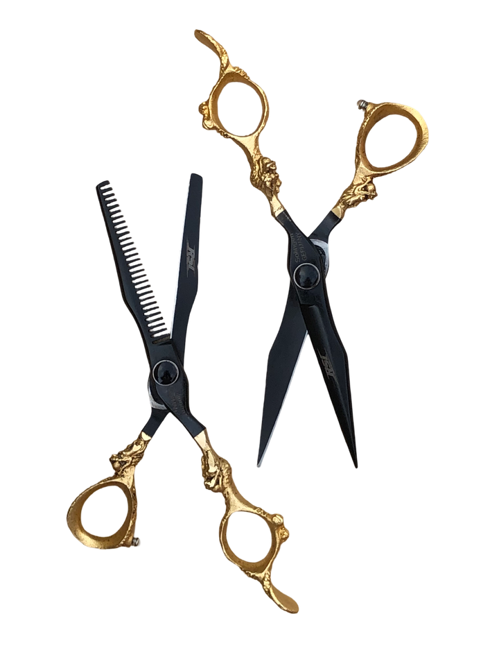 Tijeras de Peluquería de Alta Gama, Juego de Tijeras de Acero Inoxidable de Alta Dureza con Tornillos con Rodamientos de Diamante Amarillo