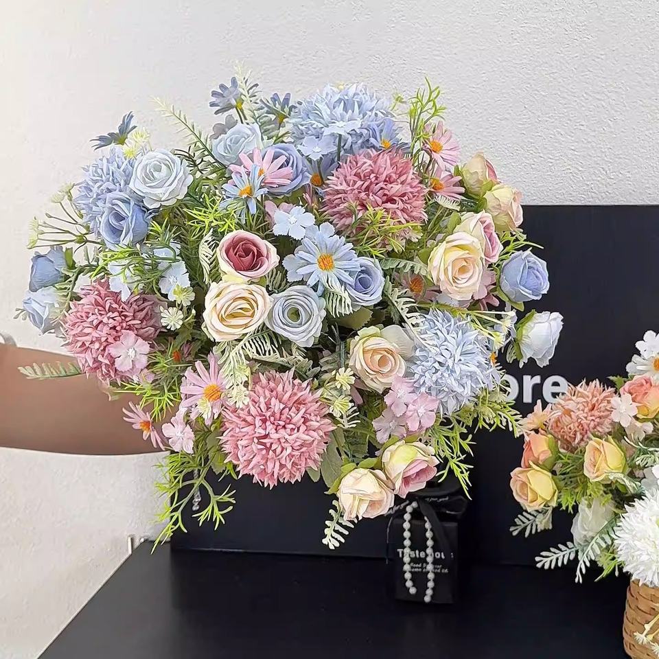 Ramo de Rosas Biónicas de Alta Gama, Inspirado en la Dopamina, con Bolas Cepilladas, Arreglos Florales Artificiales para Decoración del Hogar y Bodas