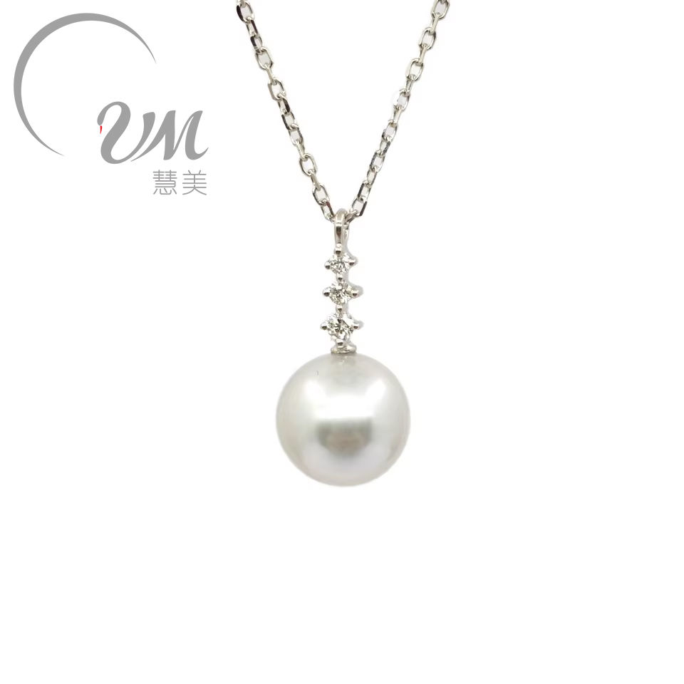 Collar con colgante de oro blanco de 18 quilates de la serie Chic de gama alta Perla de agua de mar simple con cadena de hilo de estilo clásico tachonado de diamantes