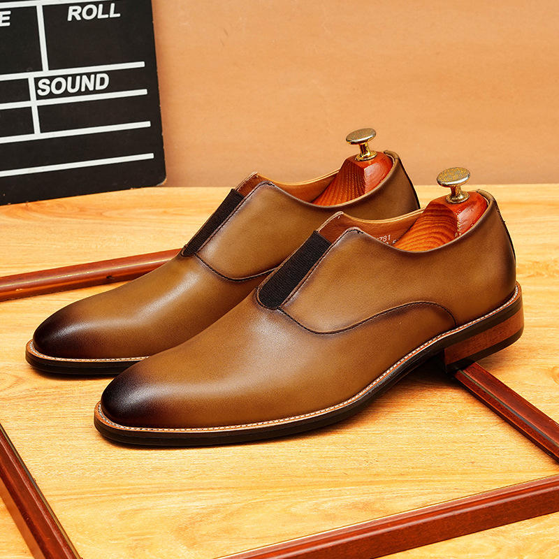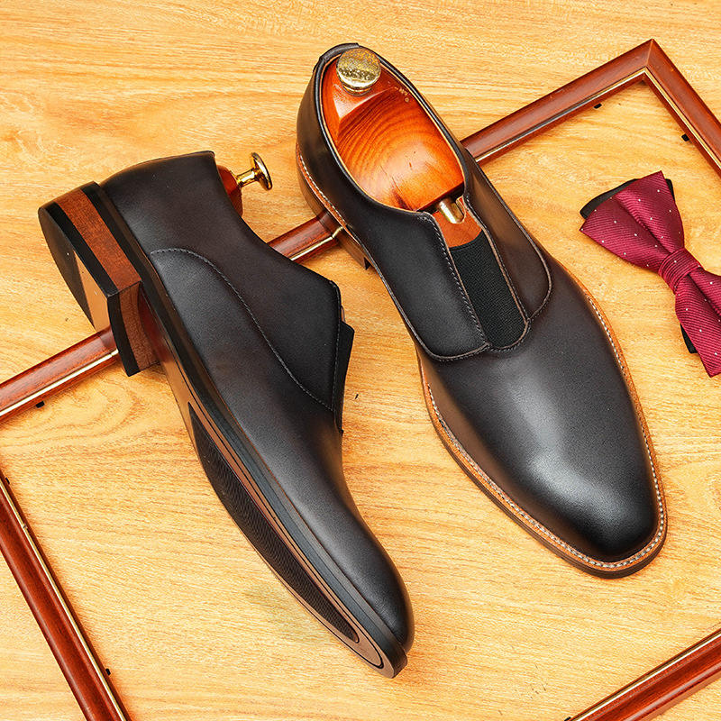 Zapatos Formales de Hombre de Alta Gama, Cómodos, con Cordones, Suela Antideslizante, Diseño Empalmado, para Bodas y Eventos, Cuero Genuino