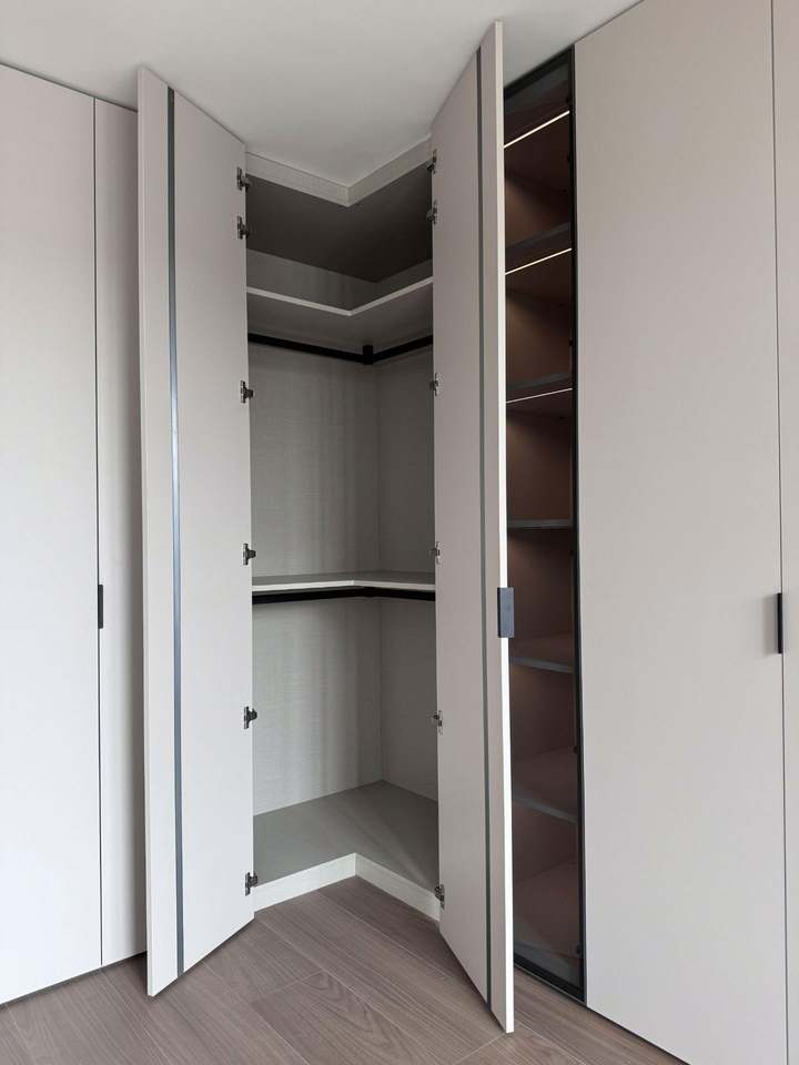 Armario de guardarropa semiabierto personalizado de gama alta con puerta de vidrio Armario de diseño creativo