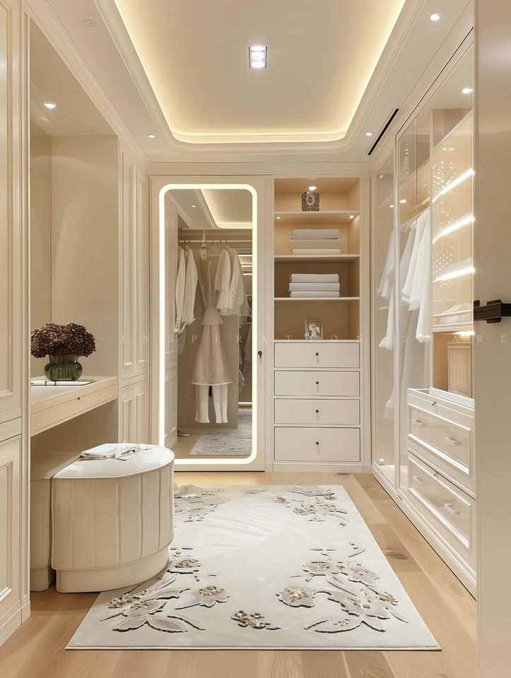 Armario de guardarropa semiabierto personalizado de gama alta con puerta de vidrio Armario de diseño creativo