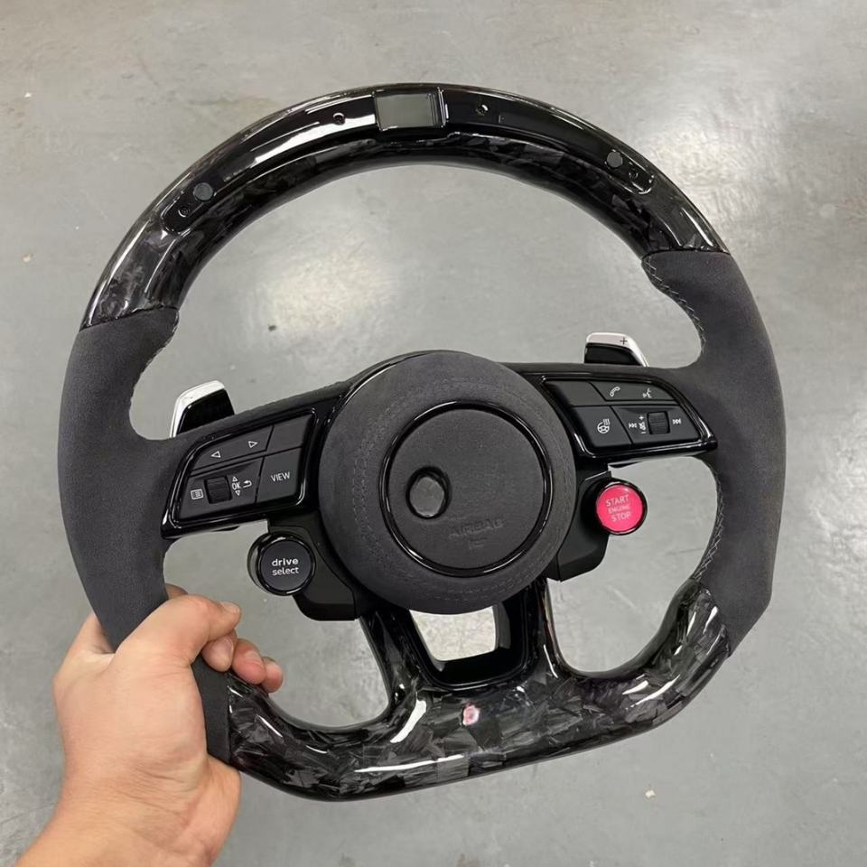 Volante de fibra de carbono forjado de alta gama con iluminación LED y cuero, compatible con Audi A3/A4/A5/A6/A7/A8/Q5/Q7/TT/RS3-RS6/B8B9/C7C8