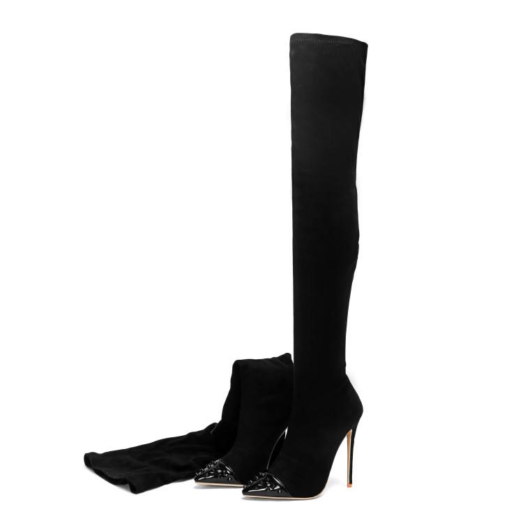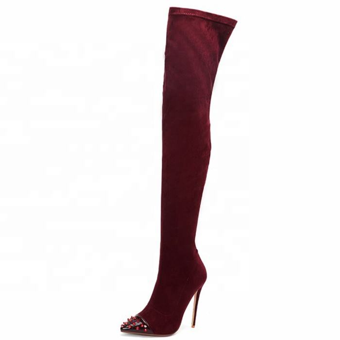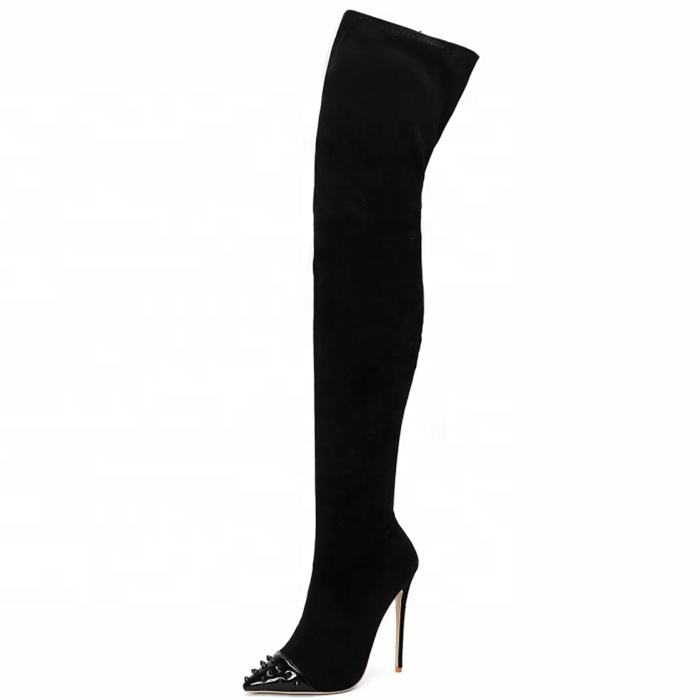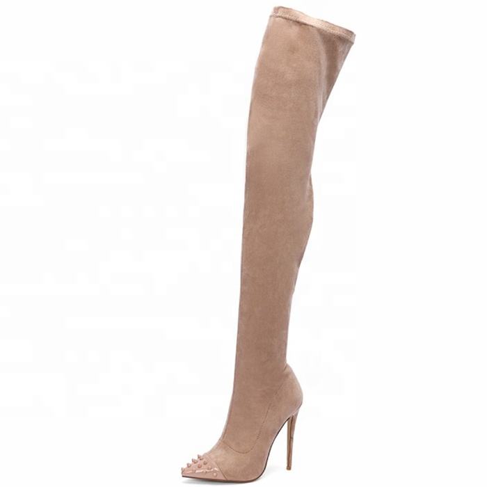 Botas de tacón alto de lujo para mujer, con remaches, por encima de la rodilla, de ante elástico, estilo stiletto, botas largas hasta el muslo