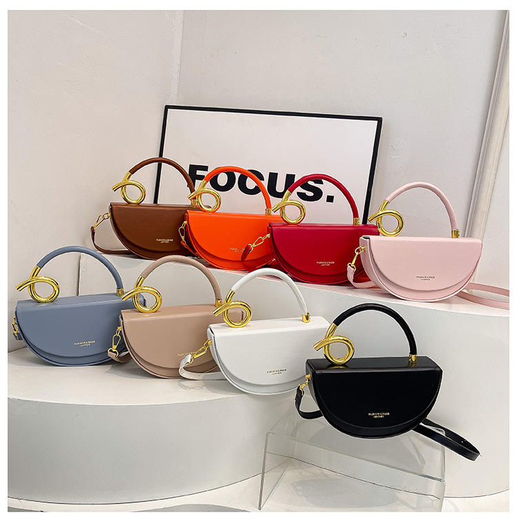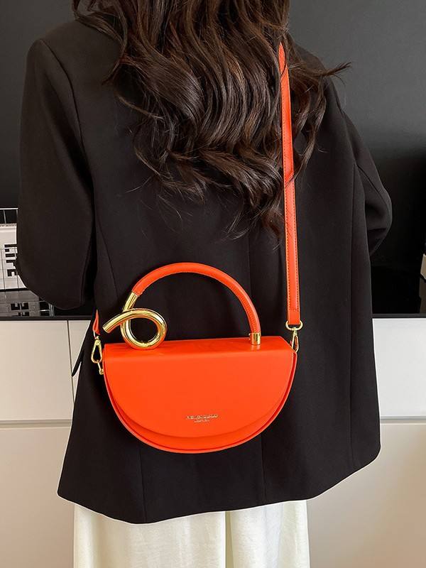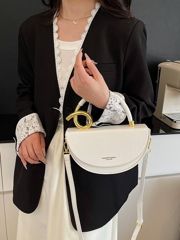 Bolso de Diseño Exclusivo de Alta Gama, Estilo Vintage, Forma de Media Luna, Poliéster, Simple, Versátil, Bandolera, Cierre Magnético