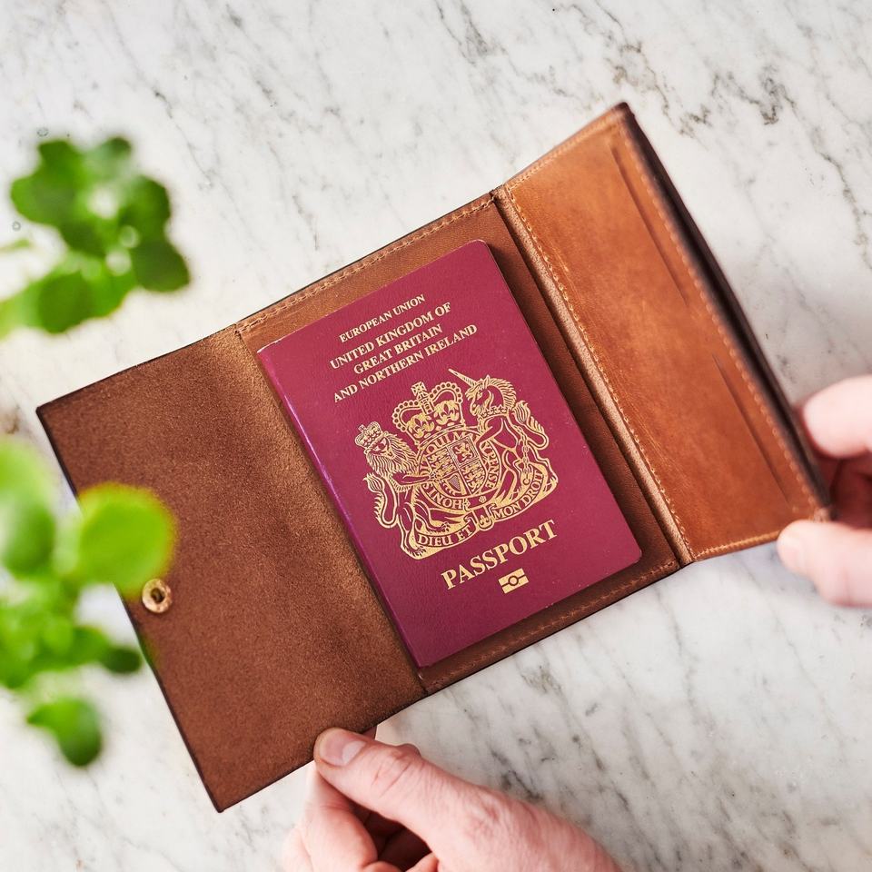 Palabras clave:Titular de pasaporte de cuero real
