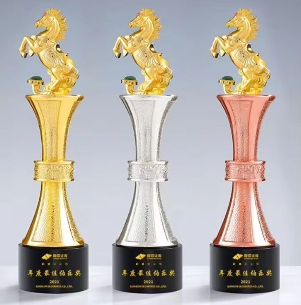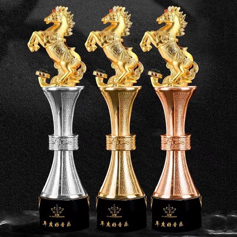 Premio de competición ecuestre de alta gama Caballo del zodiaco chino trofeo de caballo de metal grabado