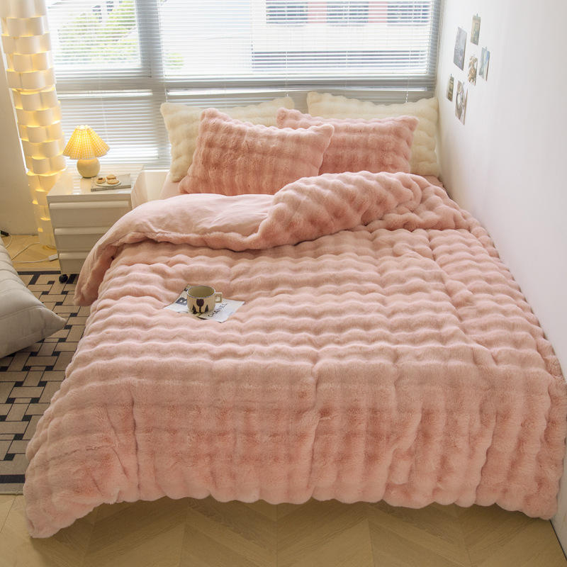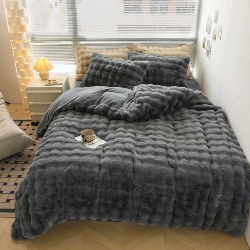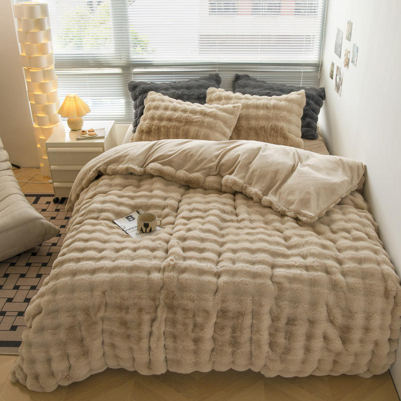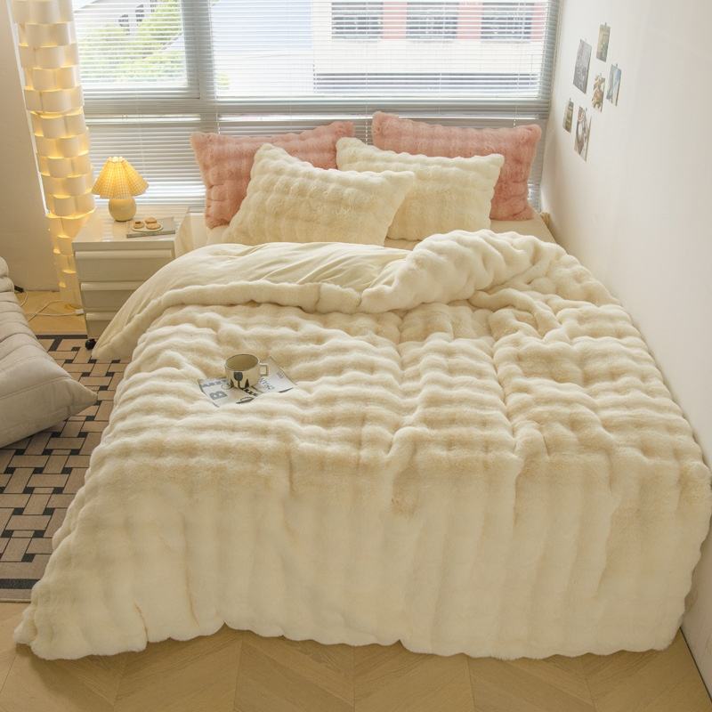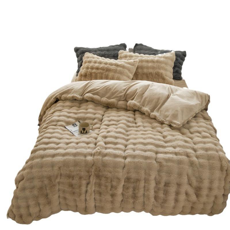 Juego de Funda Nórdica de Cuatro Piezas de Algodón Puro Teñido con Hilo, Grueso y Cálido, con Cremallera, Diseño de Dibujos Animados de Invierno de Alta Gama, Hecho a Medida para Bodas