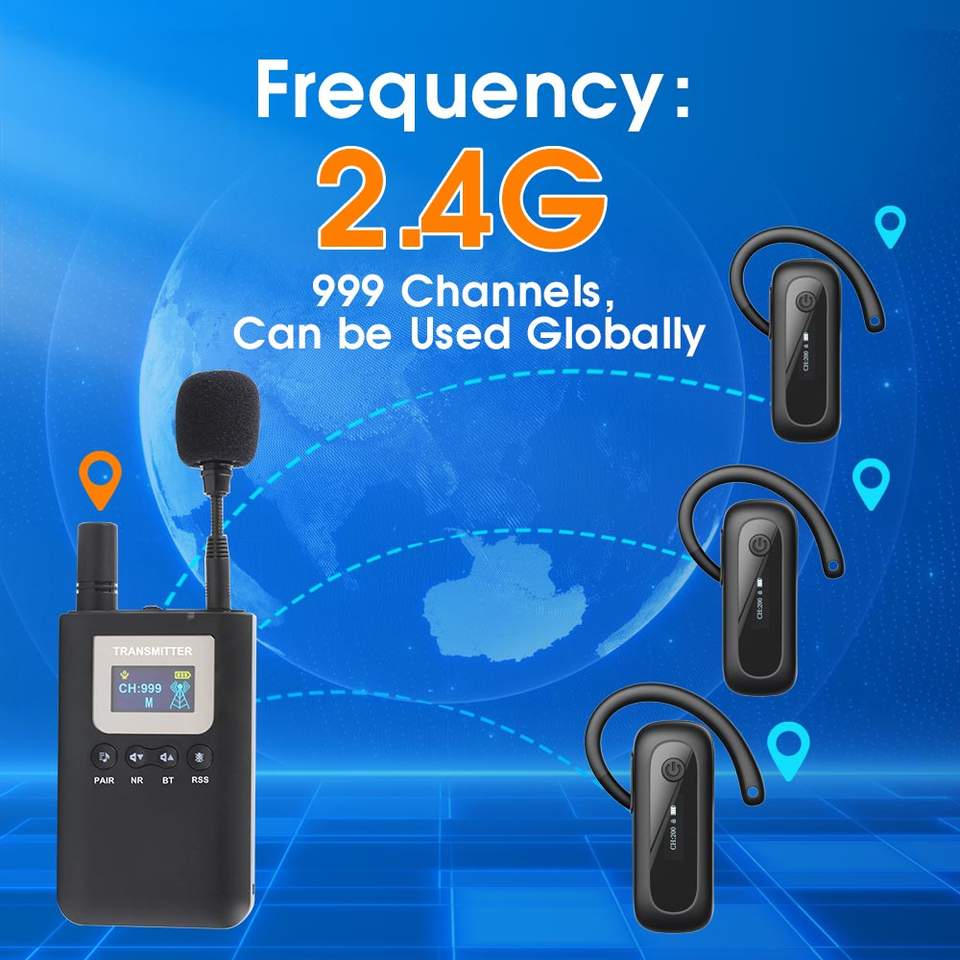 Sistema de guía de audio inalámbrico de gama alta 2,4G Whisper Tour Guide con pantalla para agencia de viajes de interpretación simultánea