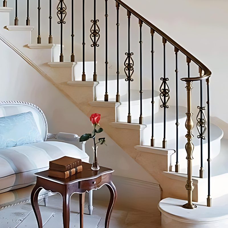 Barandillas de escalera de hierro de gama alta de proveedor confiable de Vietnam con recubrimiento en polvo resistente a la corrosión, detalles de diseño intrincados