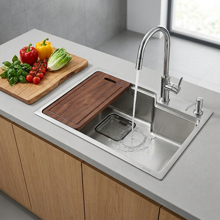 Fregadero de Cocina de Acero Inoxidable SUS304 de Alta Gama Leimanxi con Diseño de Volcán, Puerto Único Tipo B, Grosor de 3+0.75 mm, Modelo 7545/6845, Personalizado de Fábrica