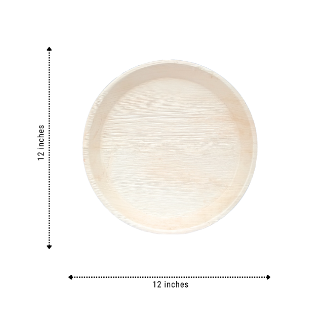 Platos y platos redondos de hoja de palma Areca de 12 pulgadas para el suministro mundial de la India