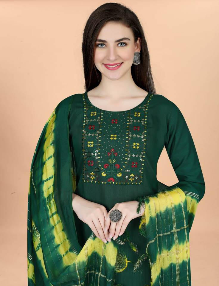 Bordado pesado Kurta con pantalón y Dupata Set *