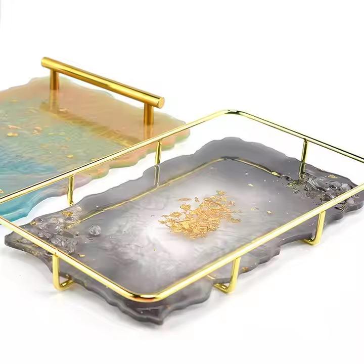 Alta demanda elegante bandeja de servicio de resina con juego de posavasos para decoración de mesa artículos artesanales de la India
