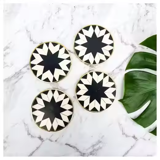Posavasos de mesa de alta demanda, nácar decorativo con diseño negro, taza de bebida, posavasos de resina de cerámica, posavasos de moda