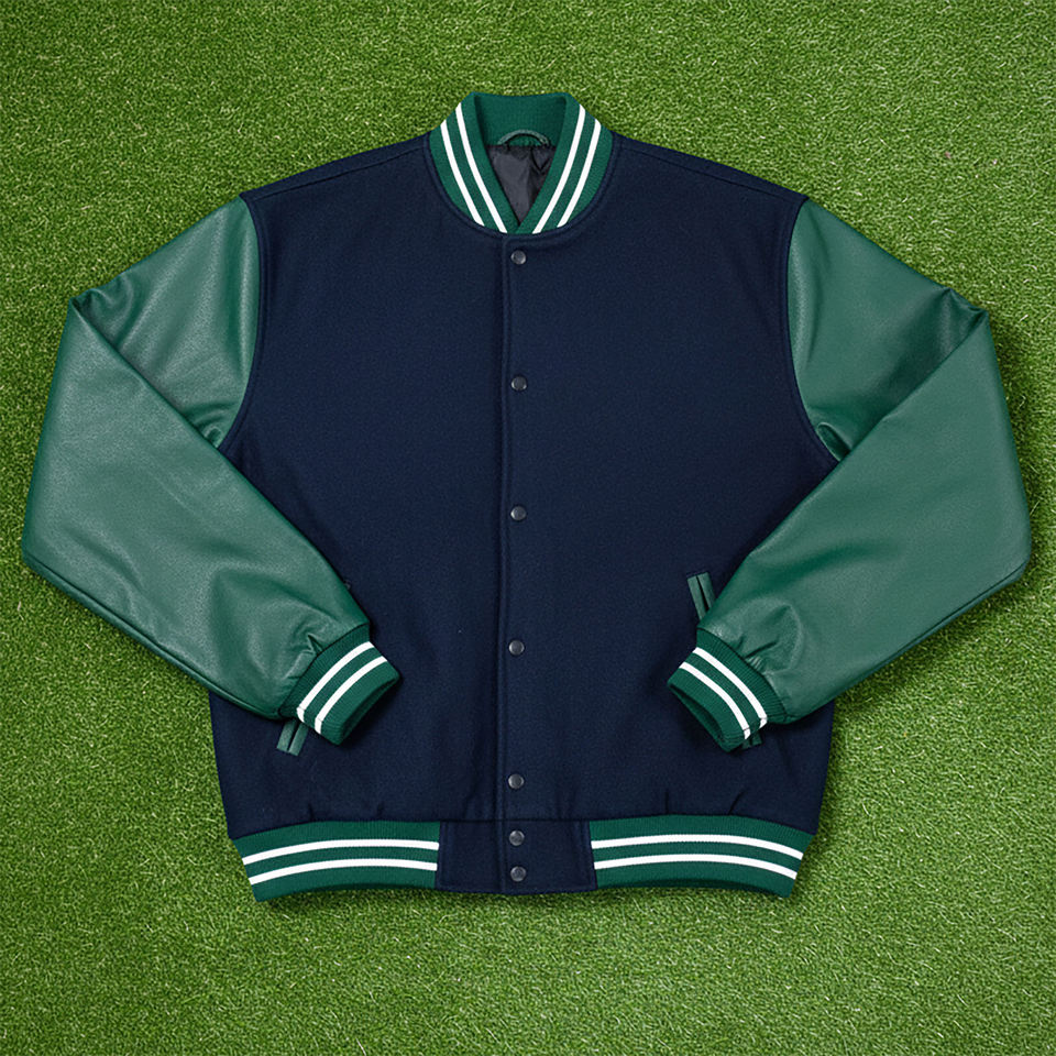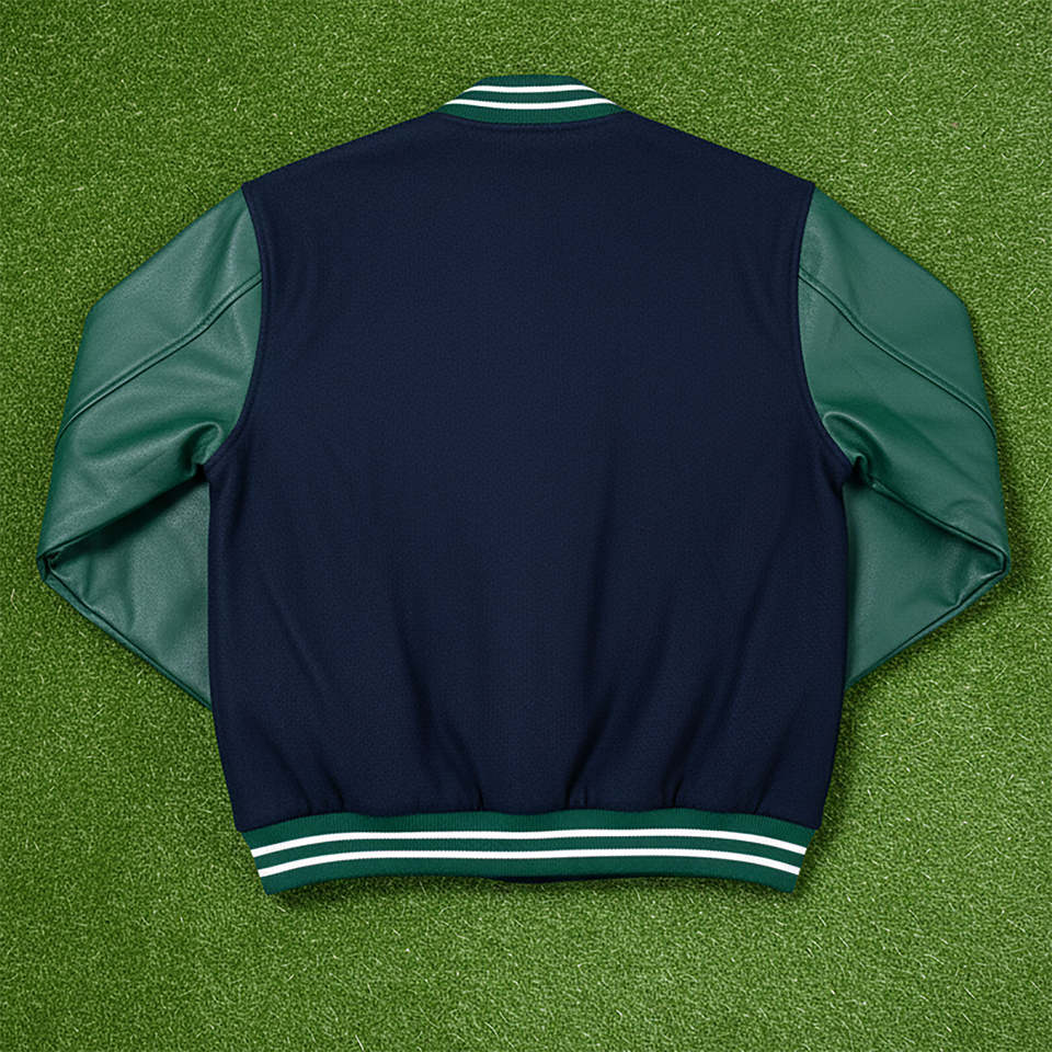 Chaqueta Varsity de Hombre, Estilo Vintage, Delgada, Verde, de Primavera, Personalizada, de Cuero, de Manga Larga y Alto Rendimiento