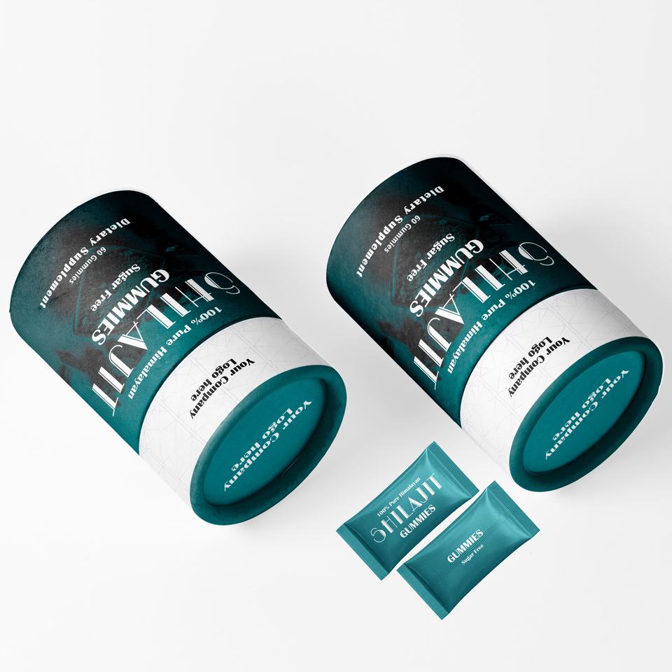 Caja cilíndrica de alta potencia de 100% gomitas Shilajit naturales para la fuerza de los hombres Pedido a granel Personalización completa al mejor precio
