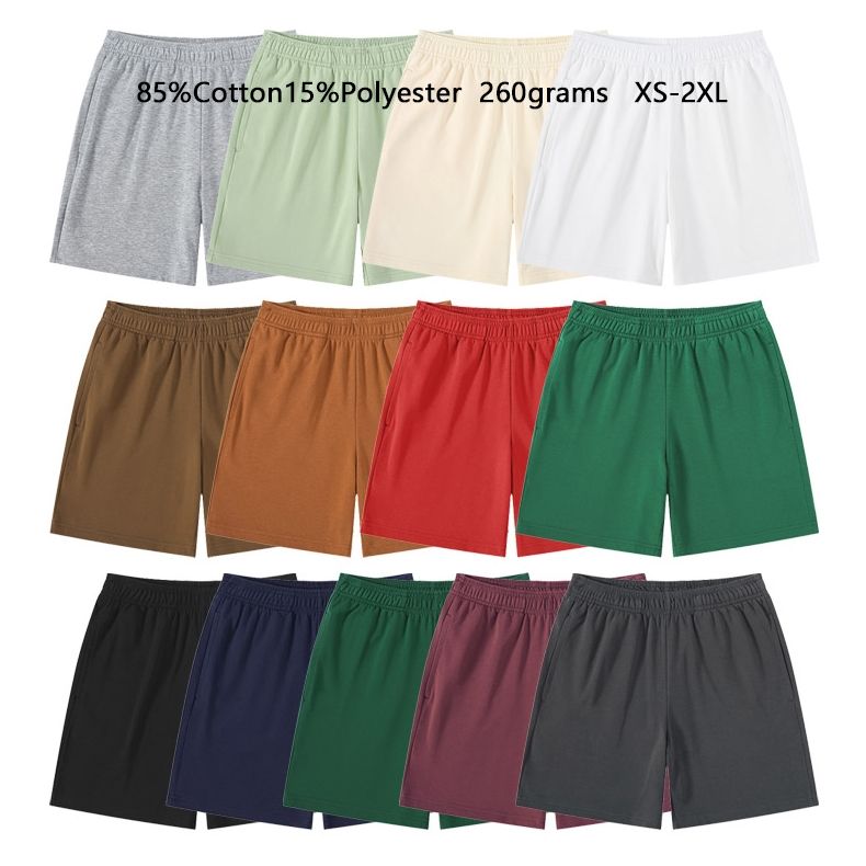 Pantalones cortos básicos de algodón de 260 gramos de peso alto de 13 colores sólidos de alta calidad, cordón interior suelto, informal unisex