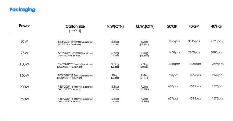 Power:50W/75W/100W/150W/200W/250W