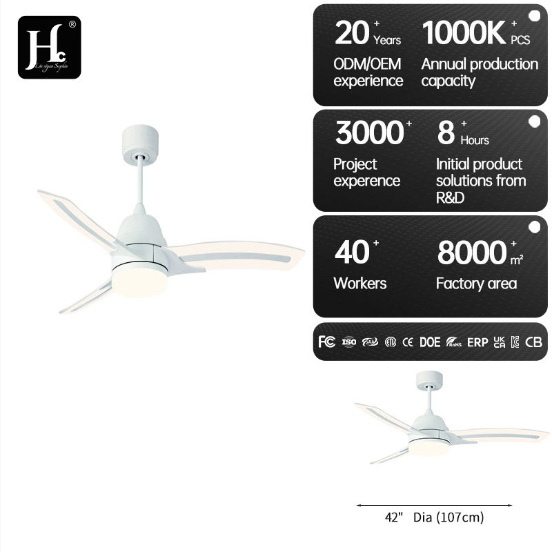 Ventilador de Techo LED de Alta Calidad de 18 W, ABS, 3 Aspas, 52 Pulgadas, Bajo Ruido, con Luz y Control Remoto