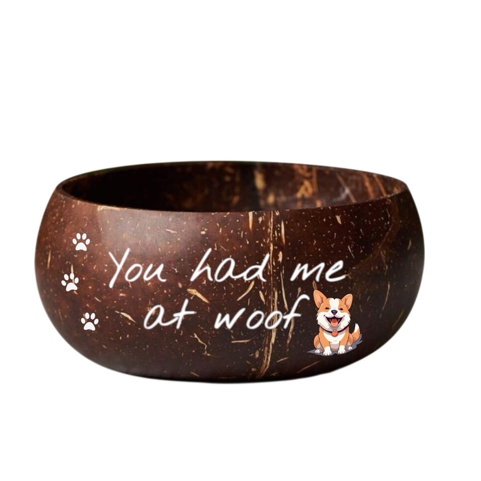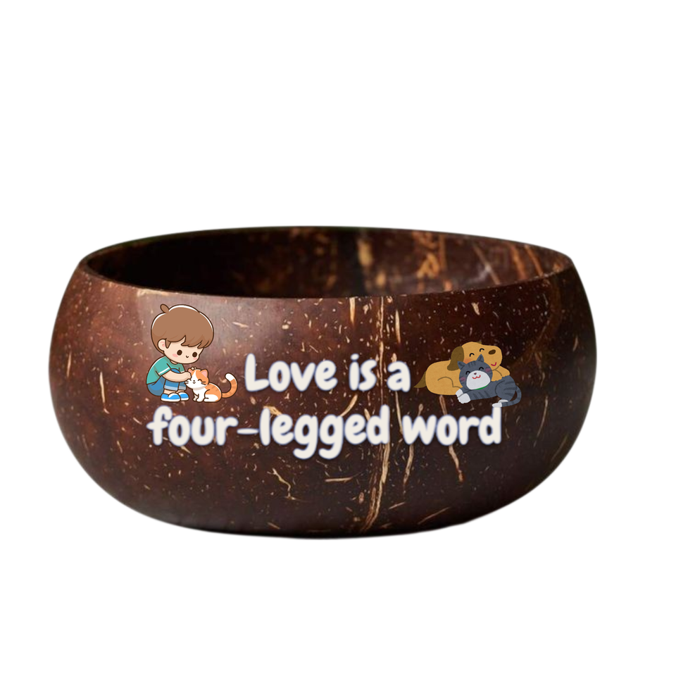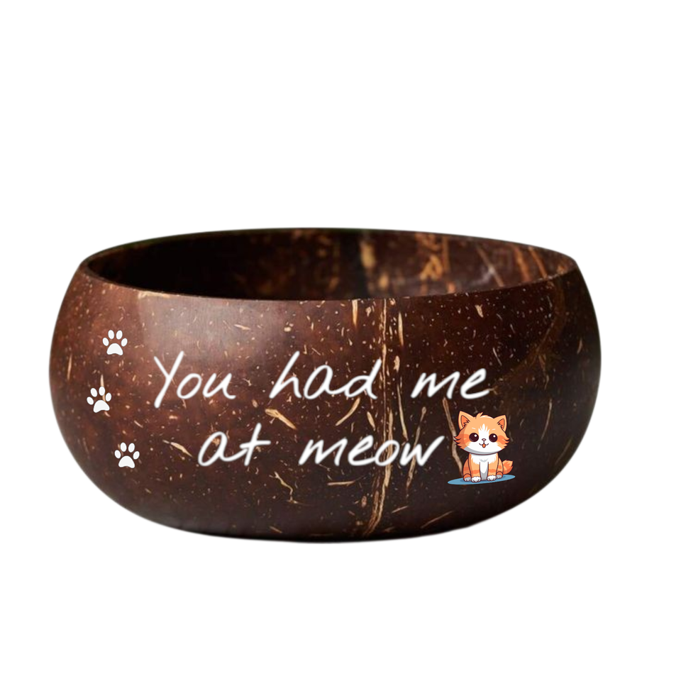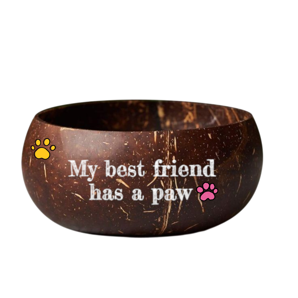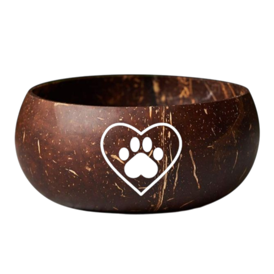 Tazón de cáscara de coco hecho a mano de la mejor opción de alta calidad con arte impreso, decoración única para amantes de las mascotas, estilo bonito, regalo sostenible para el hogar
