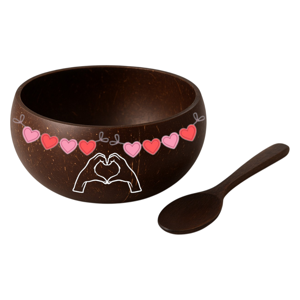 Nombre del producto:Set Printed Coconut Bowl & Spoon para los días de San Valentín
