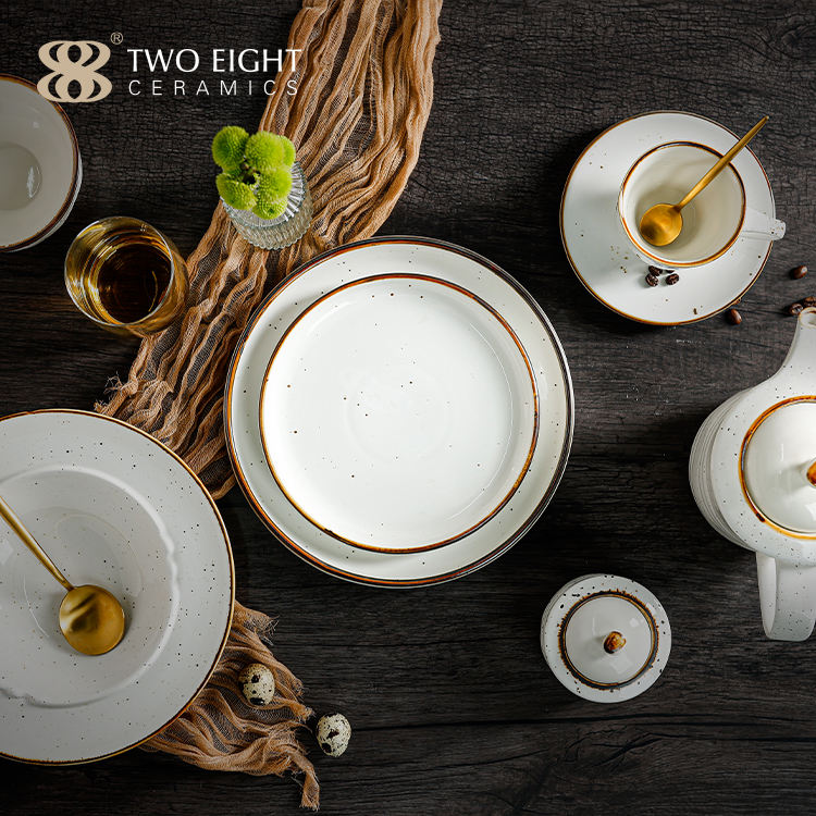 Juego de vajilla de cerámica blanca de alta calidad, vajilla de porcelana y utensilios de cocina, juego de cuencos y tazas, platos de cerámica exquisitos