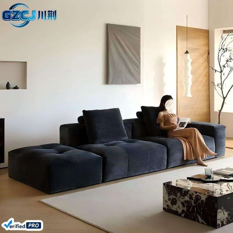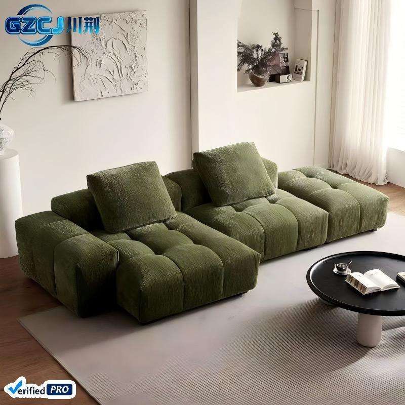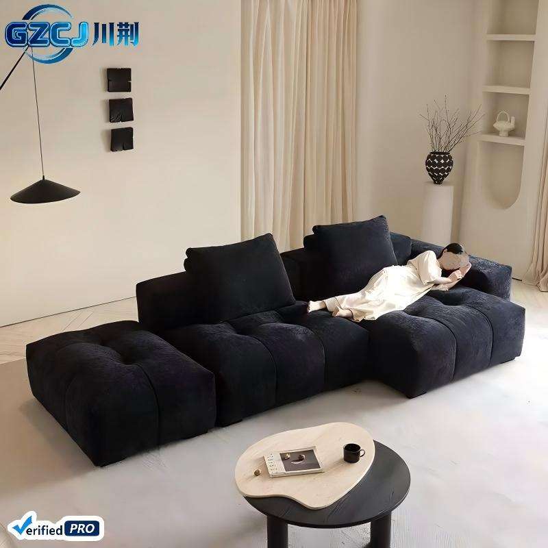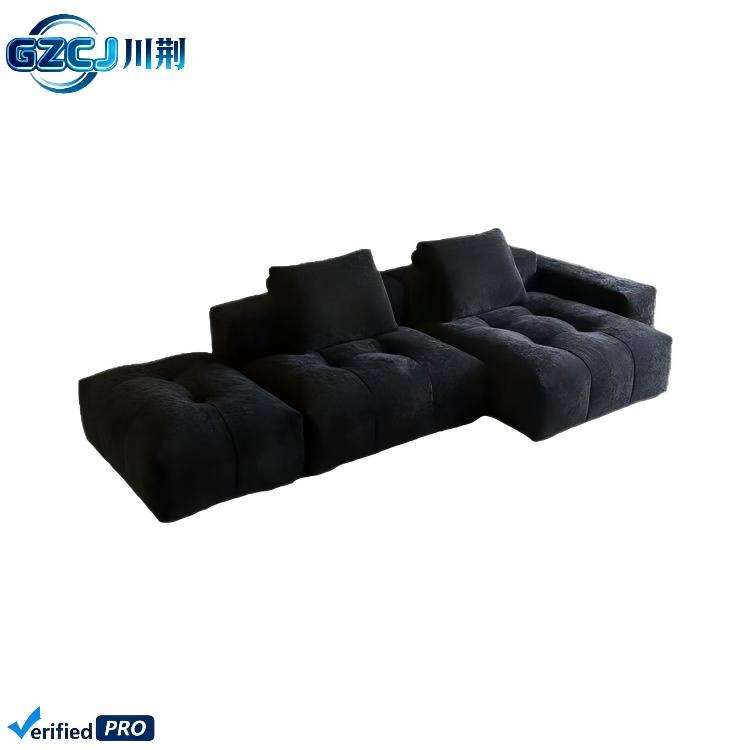 Conjunto de Sofá de Chenilla de Alta Calidad, Estilo Retro, Color Negro, con un Solo Reposabrazos, Combinación de Esquina, Estilo Moderno y Minimalista para Sala de Estar