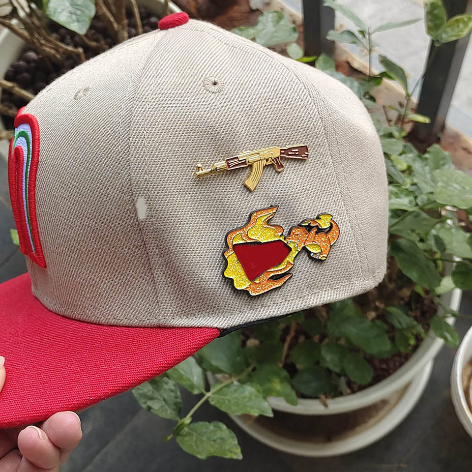 Alfileres de sombrero de solapa de Metal dorado con diseño de estilo mexicano de dibujos animados bonitos personalizados de alta calidad con cadenas