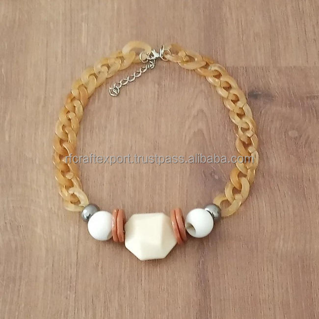Collar de resina de moda personalizado de alta calidad para mujeres niñas Cadena de cuentas geométricas hecha a mano India RF artesanía joyería de Venta caliente