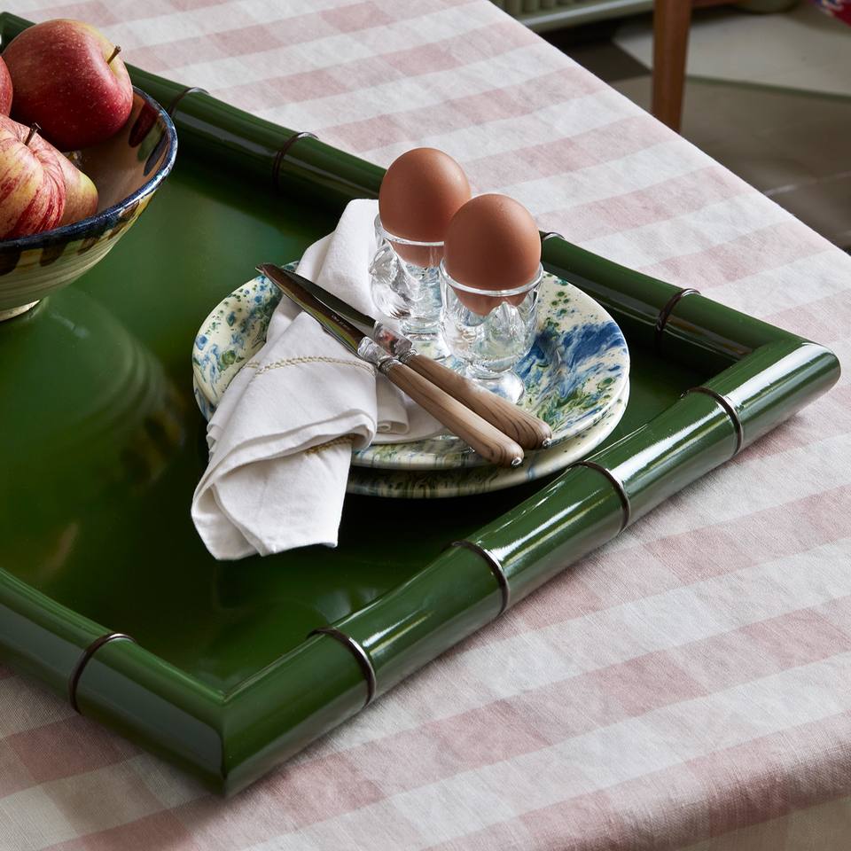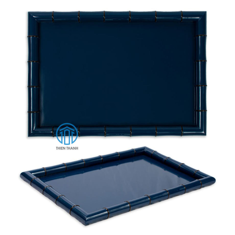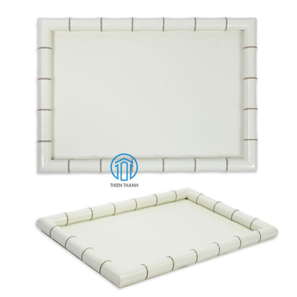 Bandeja decorativa de alta calidad para mesa de tocador, diseño de bambú de tendencia caliente, bandejas de laca de caña, bandeja otomana grande de Vietnam