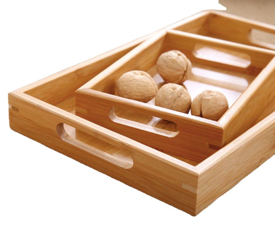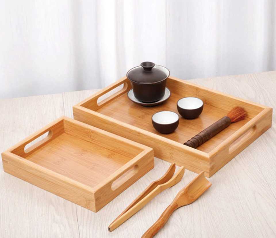 Bandeja de servicio rectangular de madera ecológica de alta calidad, plato de madera para té/desayuno/bebida