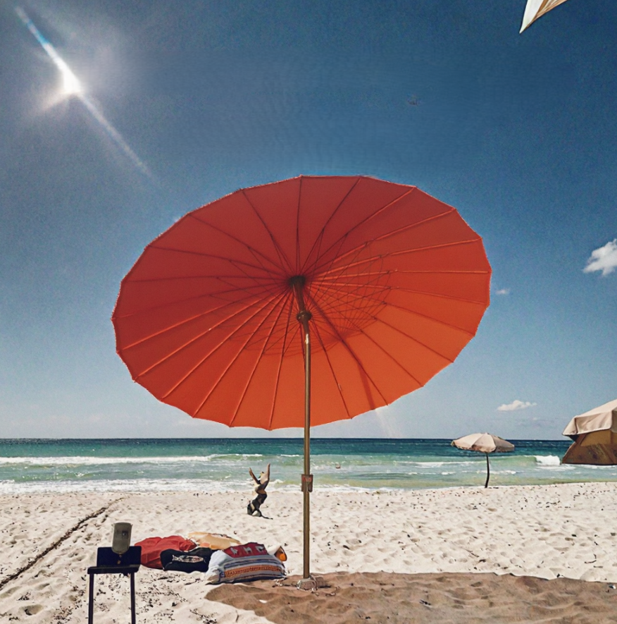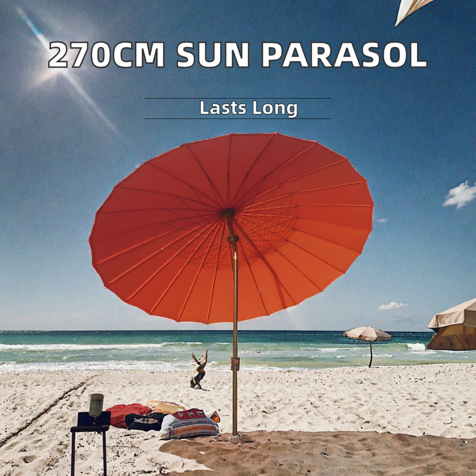 Sombrilla de Diseño Tradicional de Alta Calidad con Material de Fibra de Vidrio, 24 Varillas, Poste de Aluminio, Terraza, 9 Pies, Grande, para Exteriores