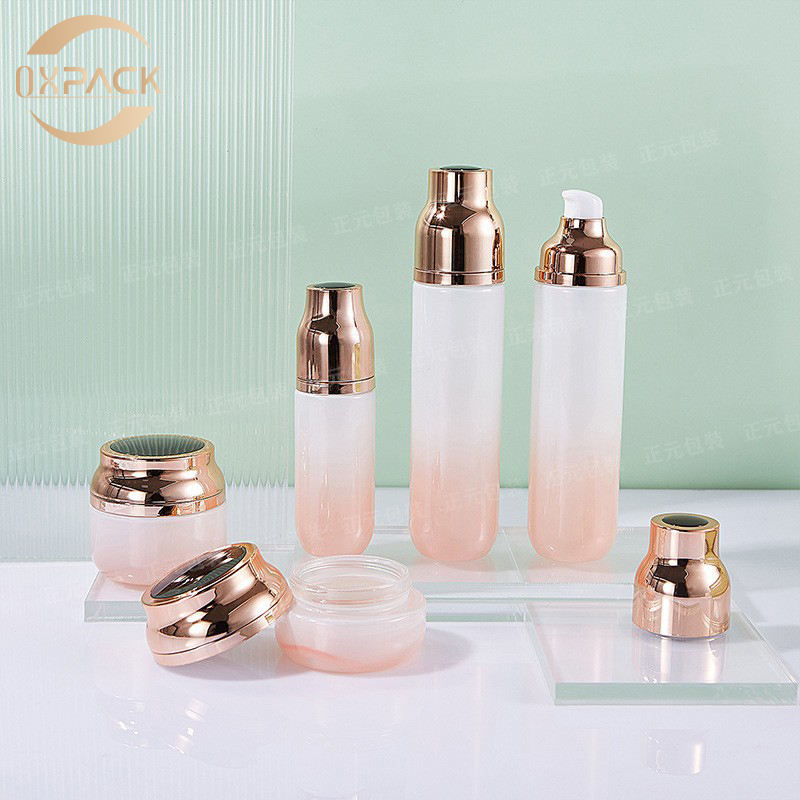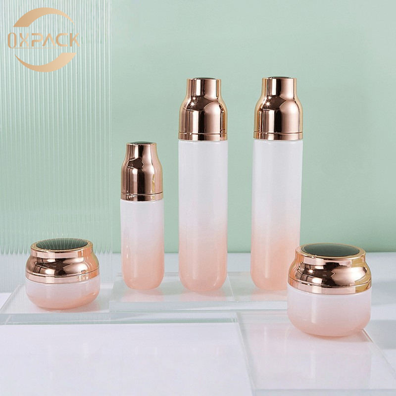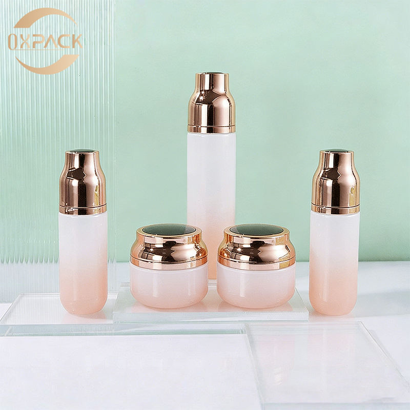 Botella de Vidrio Esmerilado de Alta Calidad con Base Redonda de 100 ml para Crema para el Cuidado de la Piel, con Tapa Dorada a Rosca, Botella de Loción Cosmética con Pulverizador Degradado