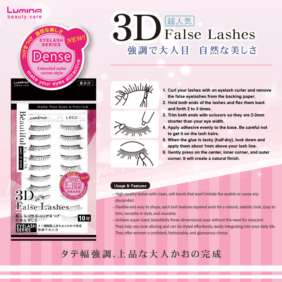 Pestañas Postizas 3D de Alta Calidad Hechas a Mano, Reutilizables, Autoadhesivas, Súper Elásticas, LE01, Venta al Por Mayor por King & Lady Mate